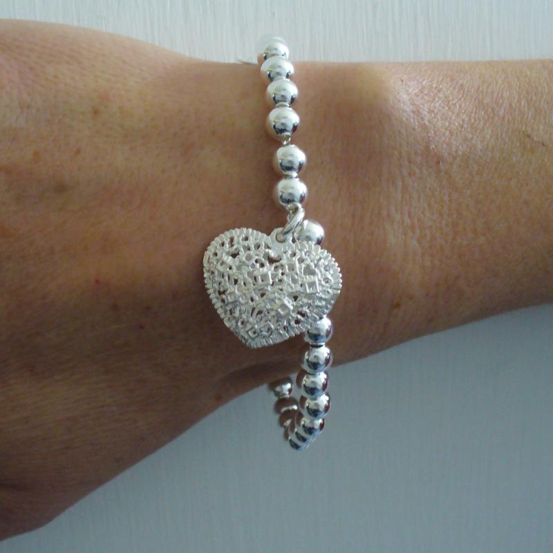 Bracciale argento palline 6mm con cuore traforato.