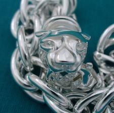 Il bracciale e' composto da una catena doppia vuota, in argento 925 con finale a testa di pantera.