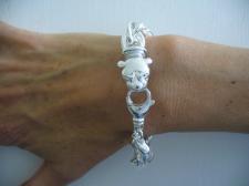 Il bracciale e' stato lasciato del colore naturale dell'argento, lucidato manualmente a specchio, su richiesta del cliente e' possibile rodiarlo.