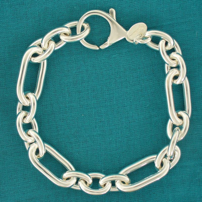 Bracciale in argento 925, con catena a maglie vuote forzatina allungata, alternata.