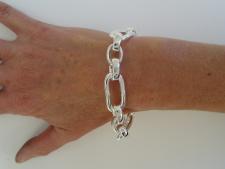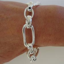 Elegante bracciale donna in argento 925, catena con gruppi di tre maglie rolo' ovali alternati da maglie allungate della lunghezza di 30mm ed una largheza di 14mm.