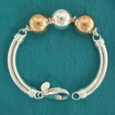 Bracciale semirigido in argento 925, centrale con tre grandi sfere del diametro di 16mm, sfera centrale del colore naturale dell'argento, due sfere laterali in argento placcato oro rosa 18kt.