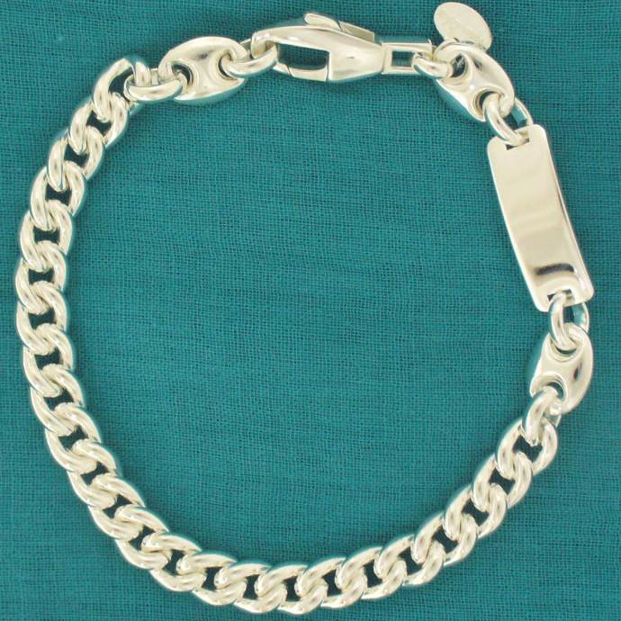Bracciale uomo in argento 925, con catena grumetta massiccia del diametro esterno di 7mm.