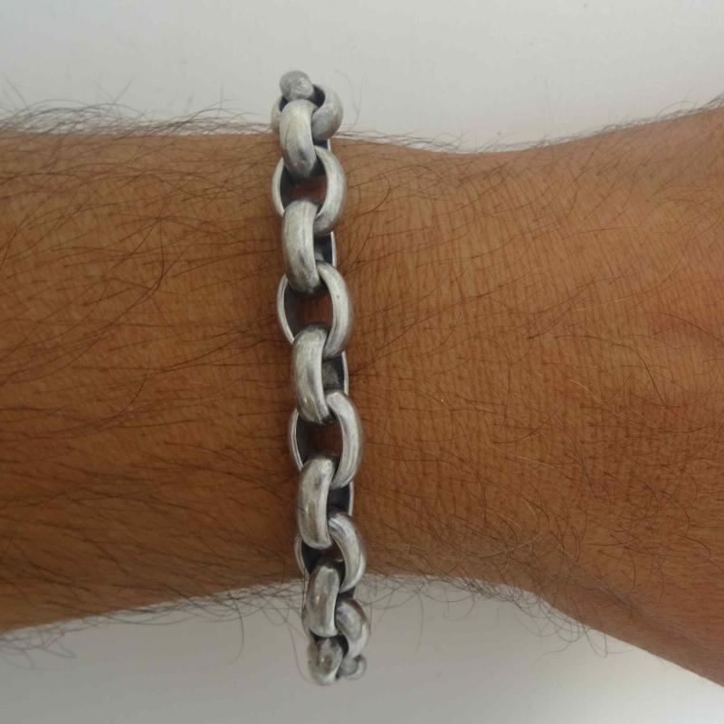 Vendita online bracciale maglia Rolo' ovale 8,5mm in argento 925 massiccio, argento anticato.
