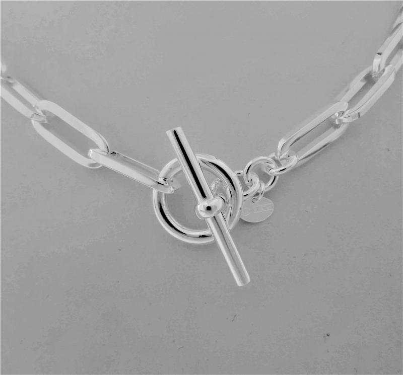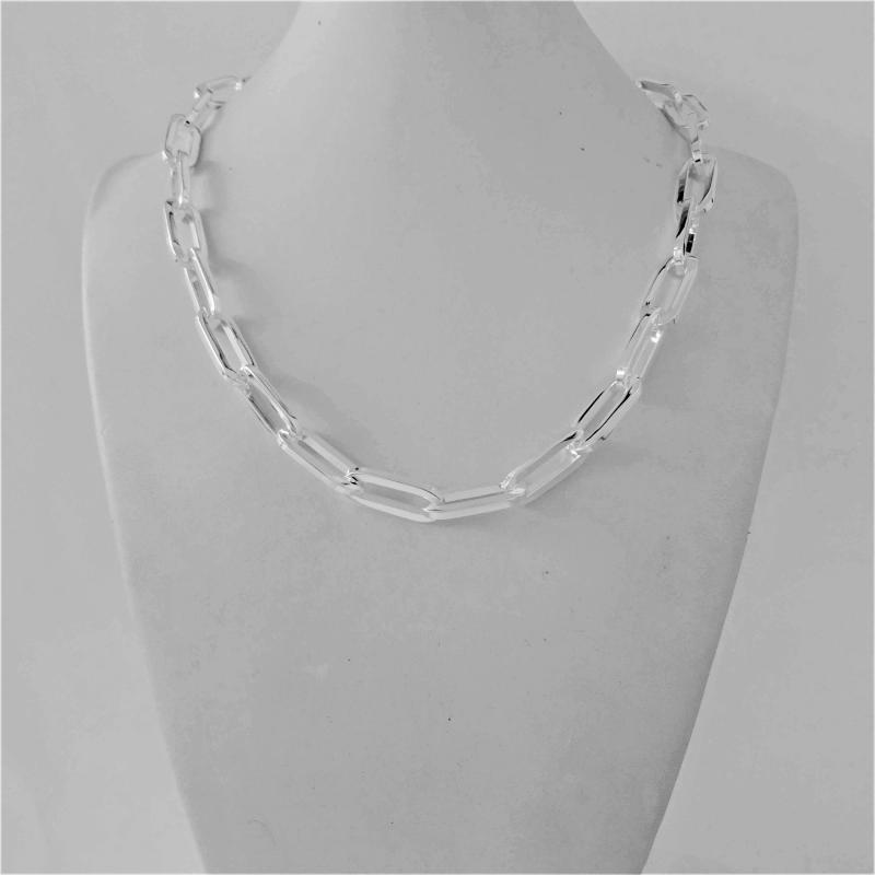Collana in argento 925 MASSICCIO, maglia allungata 8,5mm, filo sezione quadrata grande. Lunghezza 45 cm. CHIUSURA T-BAR.