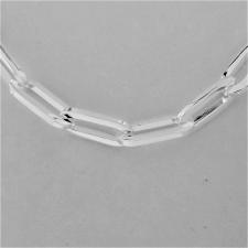 Le maglie sono di forma allungata, la sezione del filo e' quadrata. E' la versione piu' grande delle catene a maglia allungata con filo quadrato.