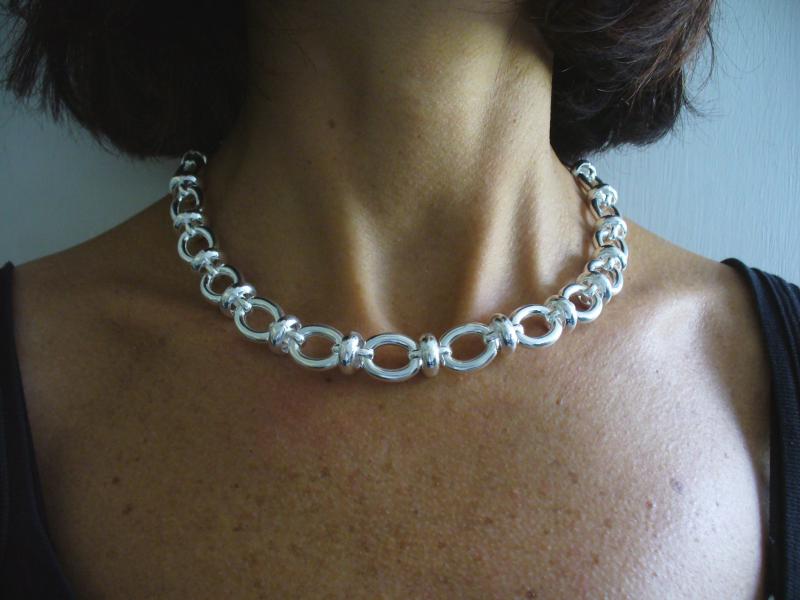 Collana artigianale argento 925 maglie ovali e tonde. Larghezza 13mm.