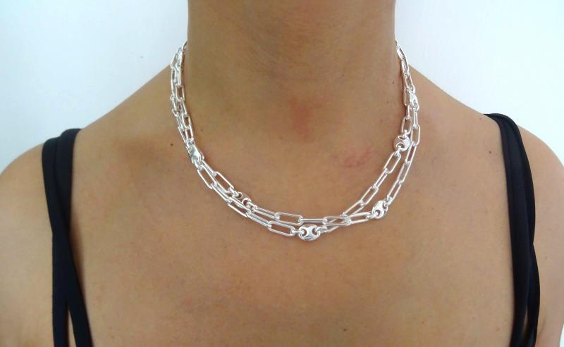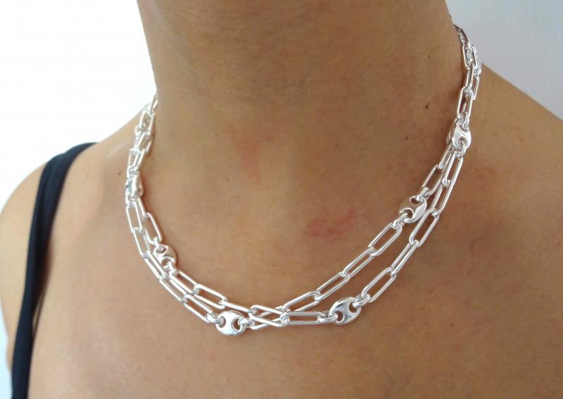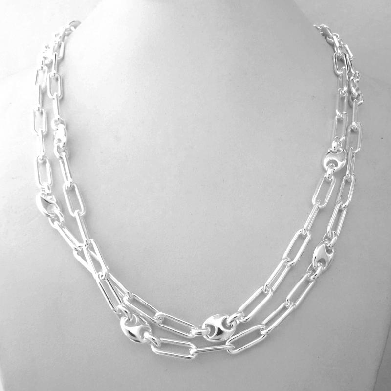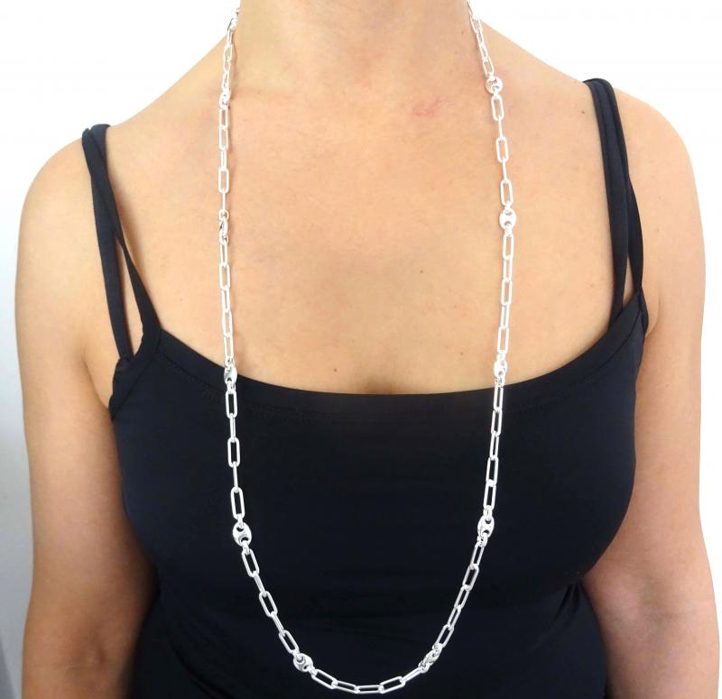 Collana lunghezza cm 90 in argento 925 massiccio. Catena paperclip 5,2mm e maglie marine 8mm.