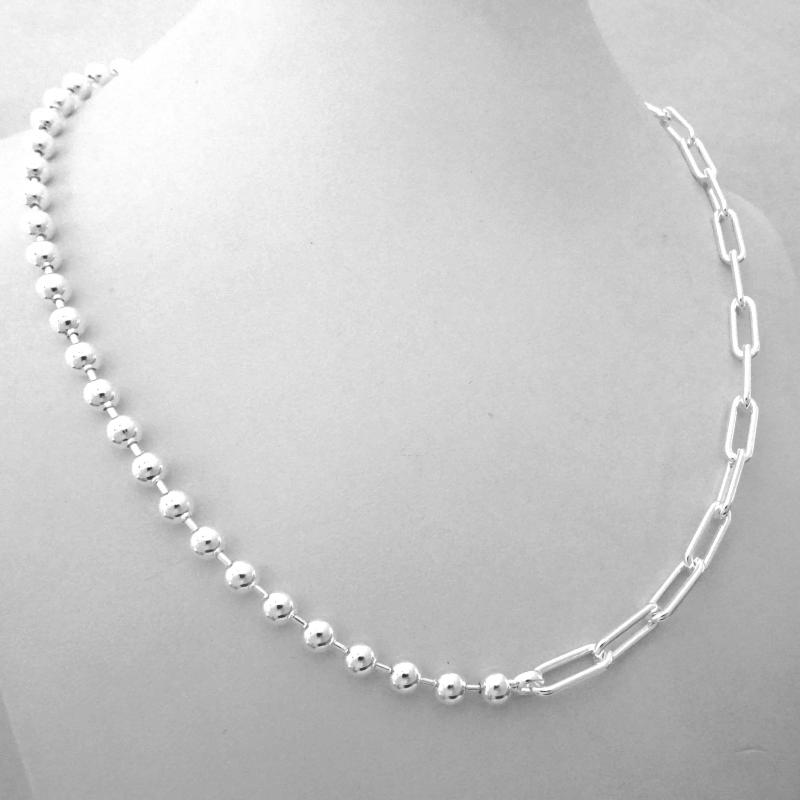 Collana in argento 925, catena a palline 5mm e catena paperclip 5,2mm.