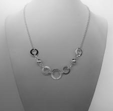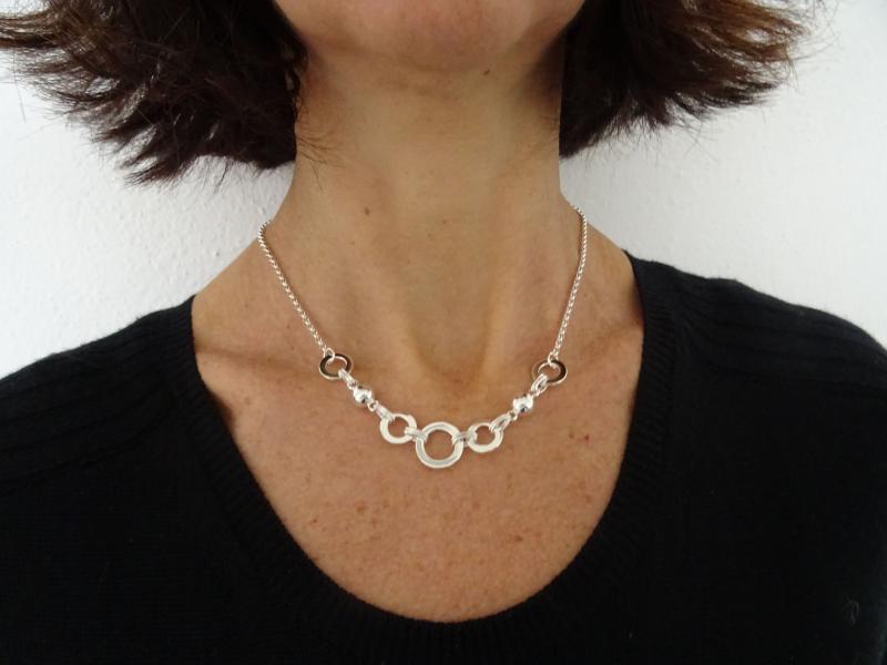 Centrale con cinque maglie tonde piatte (quattro maglie del diametro di 12mm, maglia centrale del diametro di 15mm) e due sfere del diametro di 8mm.