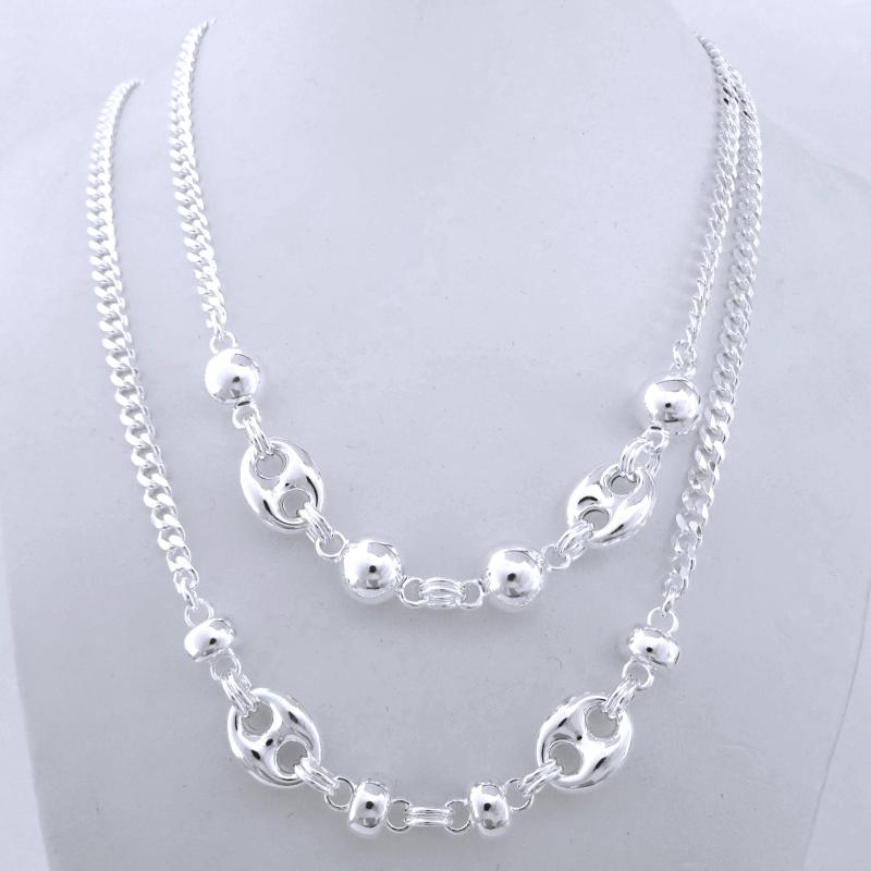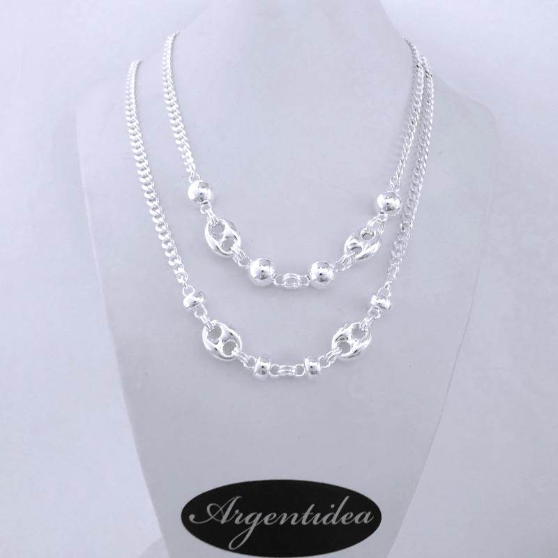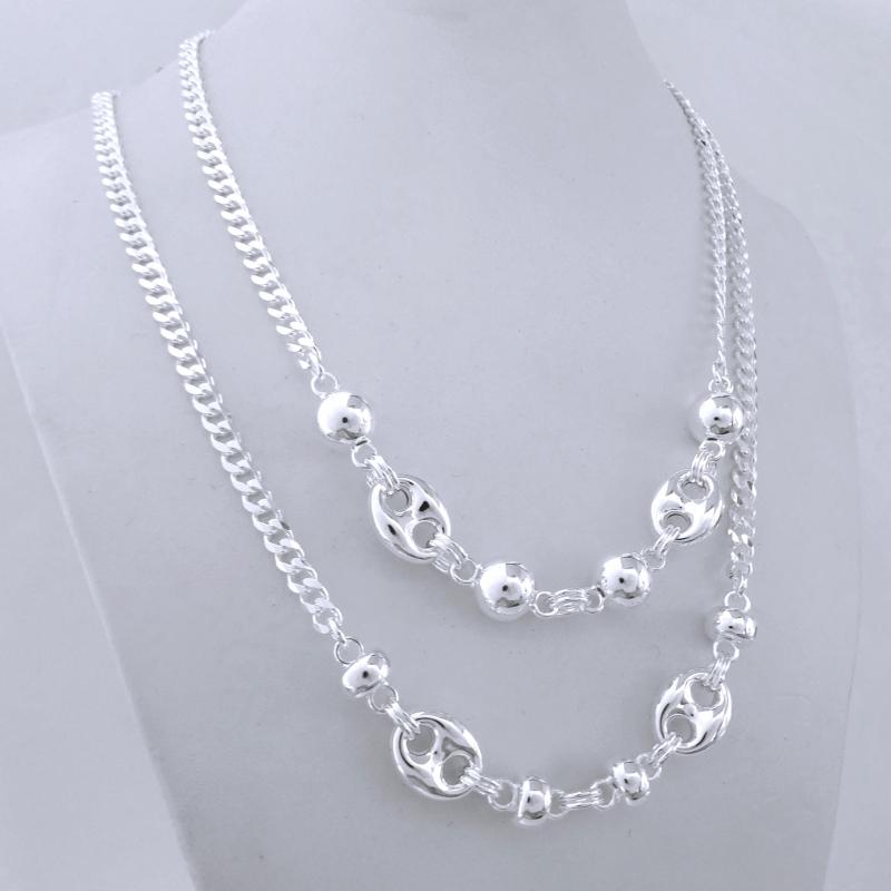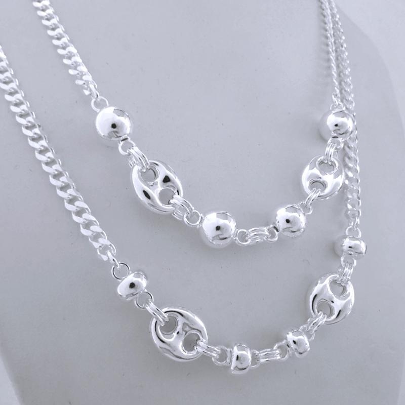 Online sales of sterling silver necklace ''925 silver necklace, 2 chains''. 925 silver chain.