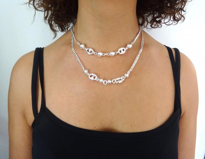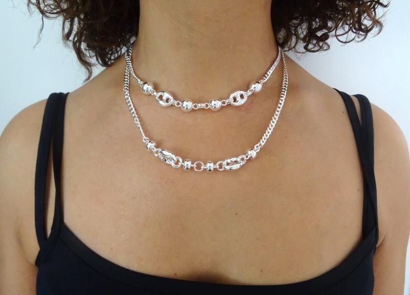 | Width of the necklace | 4.5mm curb chain - 10mm beads - 12x15mm mariner links |