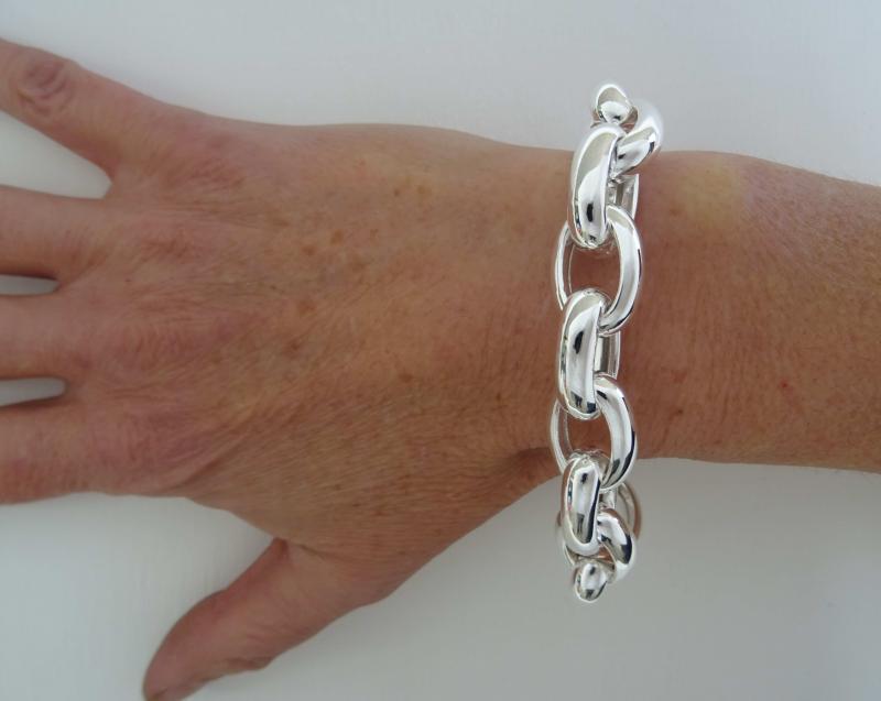 Online sales of sterling silver bracelet ''925 silver oval rolo link bracelet 15mm''. 925 silver hollow chain.