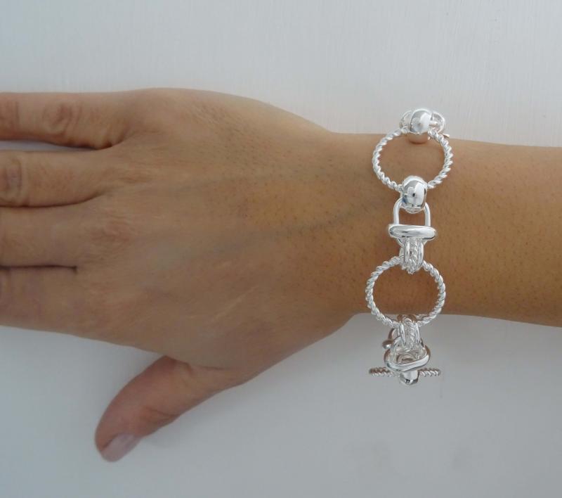 Handmade 925 sterling silver bracelet. Textured round link bracelet 22mm.