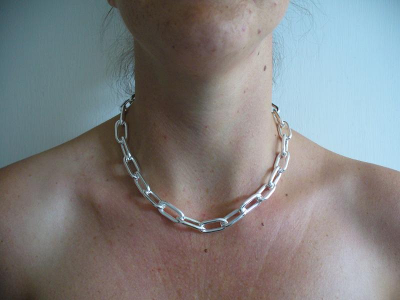 La collana e' la misura intermedia delle nostre catene a maglia forzatina allungata.