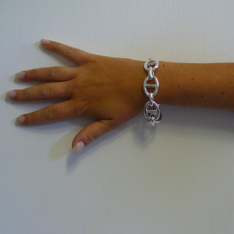 Il bracciale e' stato lasciato del colore naturale dell'argento, su richiesta del cliente e' possibile rodiarlo.