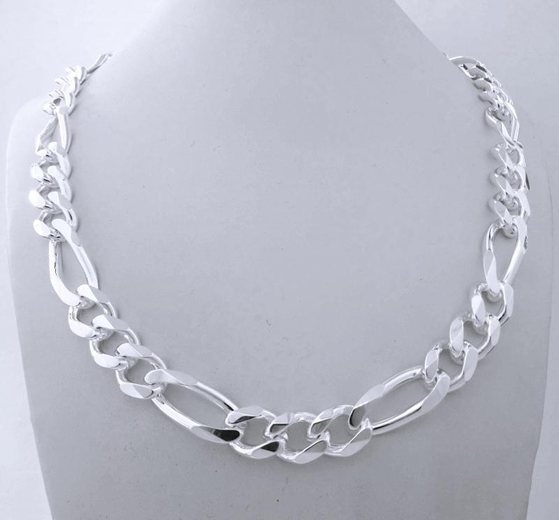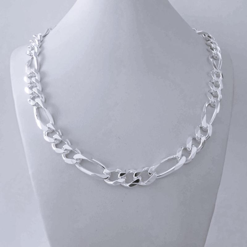Collana uomo in argento 925 massiccio, grumetta ''Figaro'' diamantata 6 lati. Larghezza 11,5mm. LUNGHEZZA 50 CM. 96 GRAMMI.